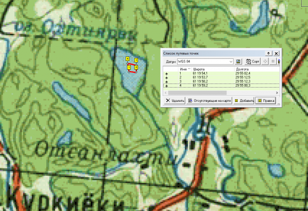 Точка 4 | 61° 19’ 59,1852’’* | 29° 55’ 0,3288’’* |